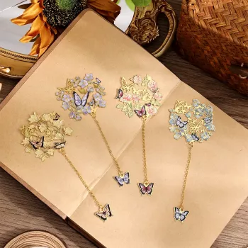 Elegant Hollow Flower & Butterfly Metal Bookmarks Set with Tassel