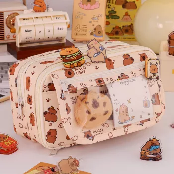 Large Capacity Cute Capibara Pencil Case for Girls – Stylish & Functional School Supplies