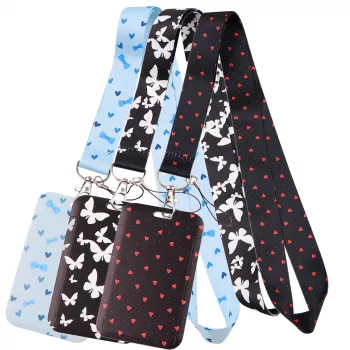 White Butterfly Lanyard Card Holder for Keys, ID Cards, Cell Phones, and More