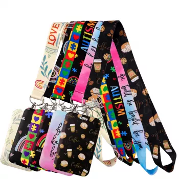 Autism Awareness Puzzle Lanyard with Key Card Holder & Phone Strap